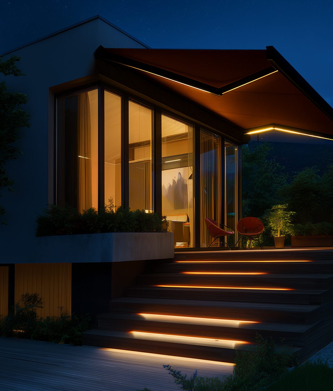 An awning is an additional cover mounted on the outside wall of a building, usually positioned above doors, windows, or terraces. Its main purpose is to offer shade and shield against sunlight, rain, and heat, contributing to a cooler indoor environment and a more enjoyable outdoor area.